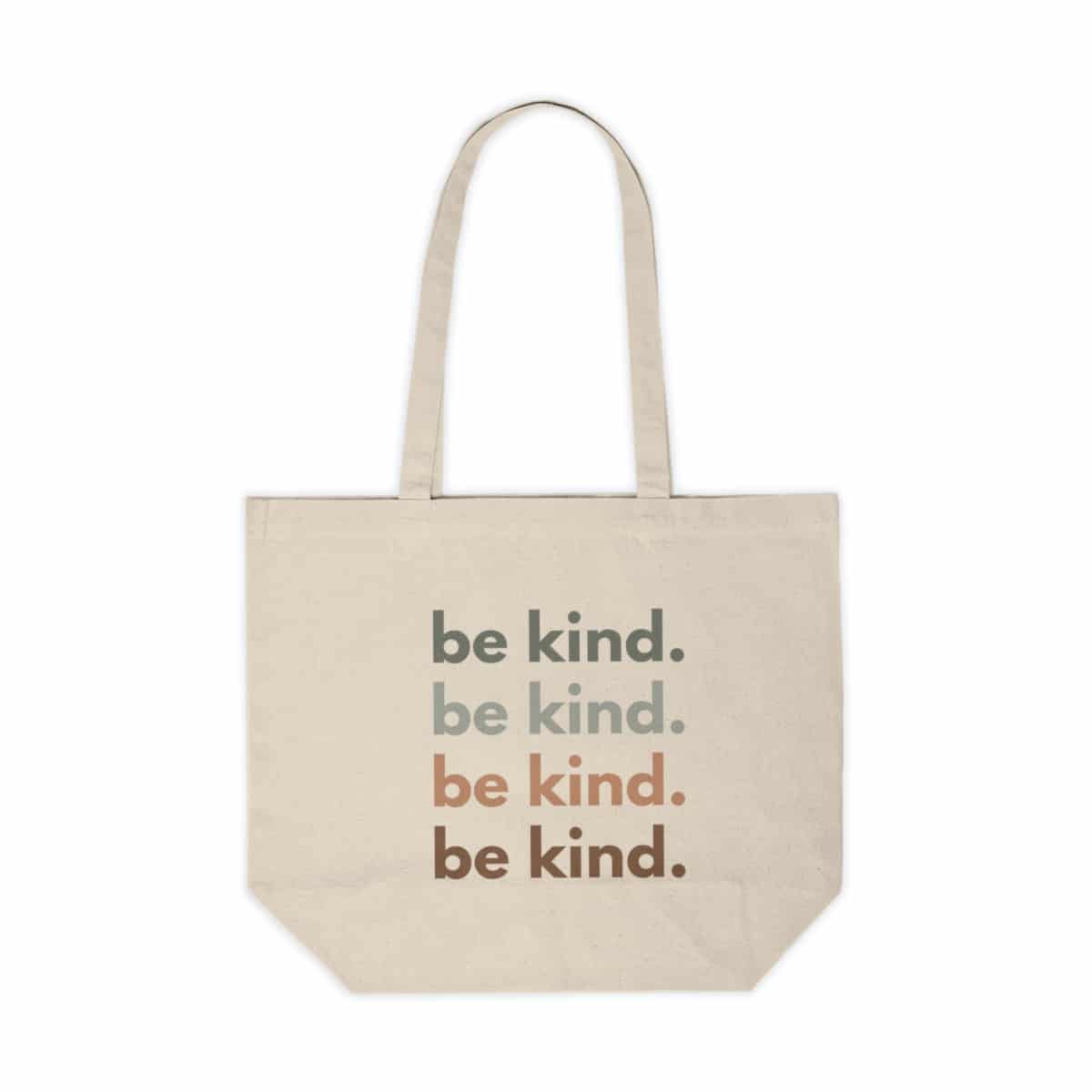 The Be Kind Large Canvas Tote Bag is perfect for yogis who care about the environment while spreading messages of love. Not only is it great for carrying your yoga mat and props, but it's also perfect for farmer's market and grocery shopping. Made from 100% 10oz cotton canvas, this tote is extremely durable and can withstand the wear and tear of everyday use. The inspiring "Be Kind" message on the front of the tote is a reminder to spread kindness wherever you go. With dimensions of 18" x 15" and a total handle length of 30", this tote is the perfect size for all your needs. Handwash or gentle wash cycle with cool temperatures to keep it looking new.