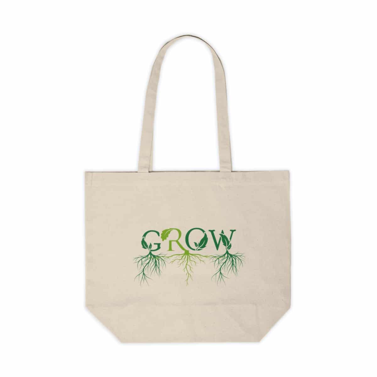 GROW large canvas tote bag is perfect for shopping trips, yoga classes, and beach days. It’s made from a natural, 10oz./yd² cotton canvas fabric that is extremely durable.