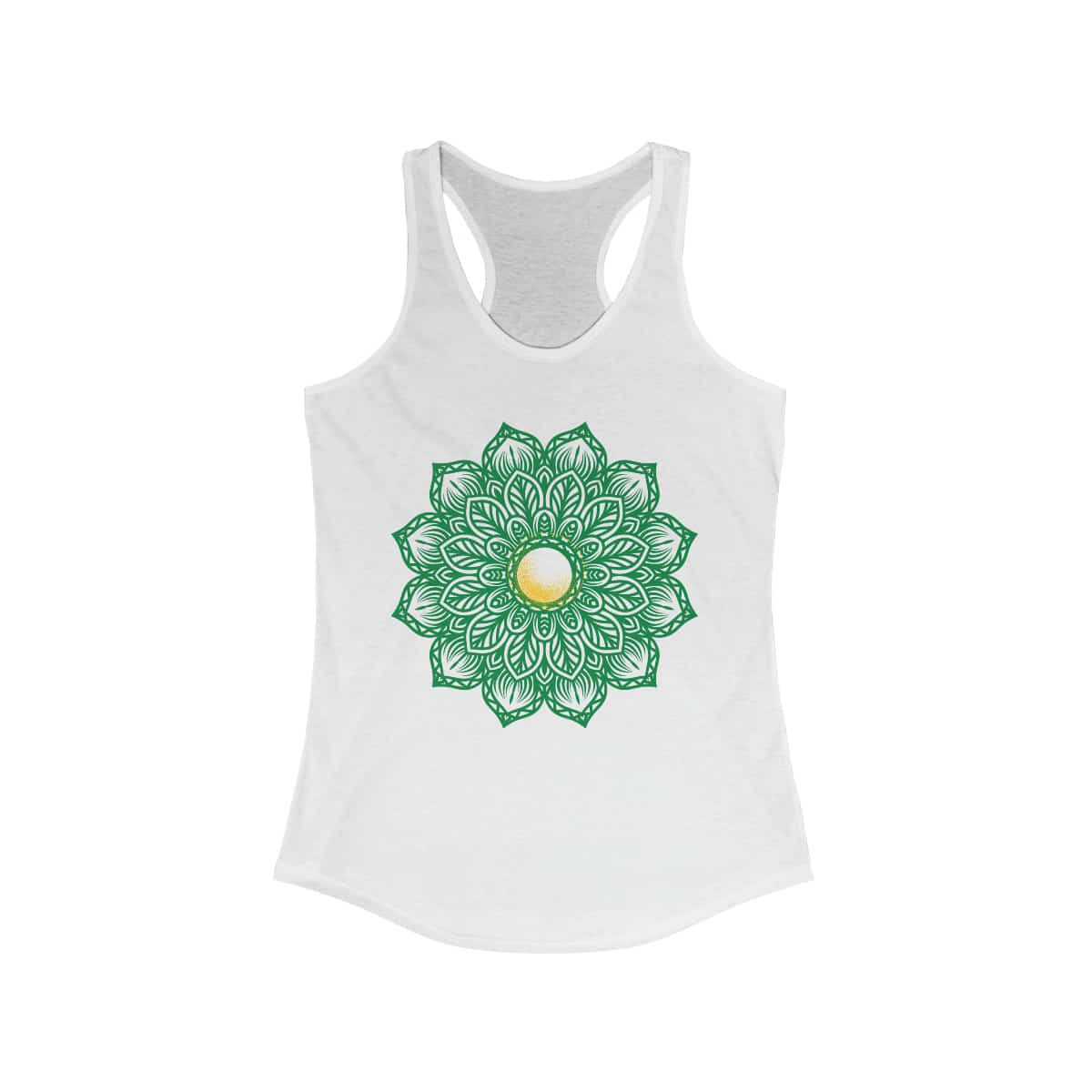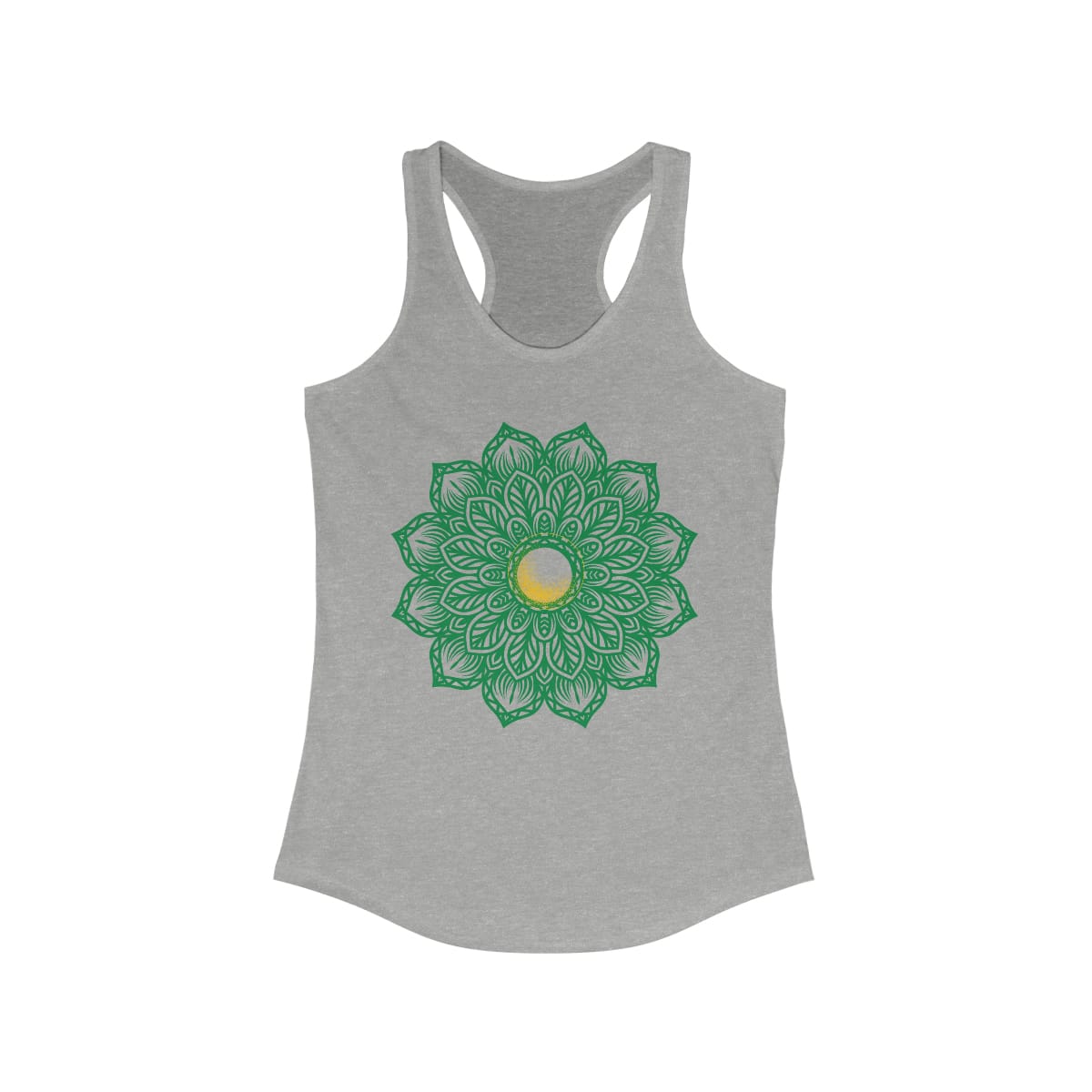 The Mandala Flower Tanktop is a perfect addition to your yoga wardrobe. Made with a blend of 60% combed ring-spun cotton and 40% polyester, this tanktop is soft and comfortable. The extra light fabric weighs only 3.9 oz/yd² (132 g/m²), making it ideal for hot yoga sessions. The slim fit design flatters your figure, and if you are between sizes, we recommend choosing the larger size. The tear-away label ensures that the tanktop is irritation-free, perfect for long yoga sessions. Order now and bring a touch of elegance to your yoga practice.